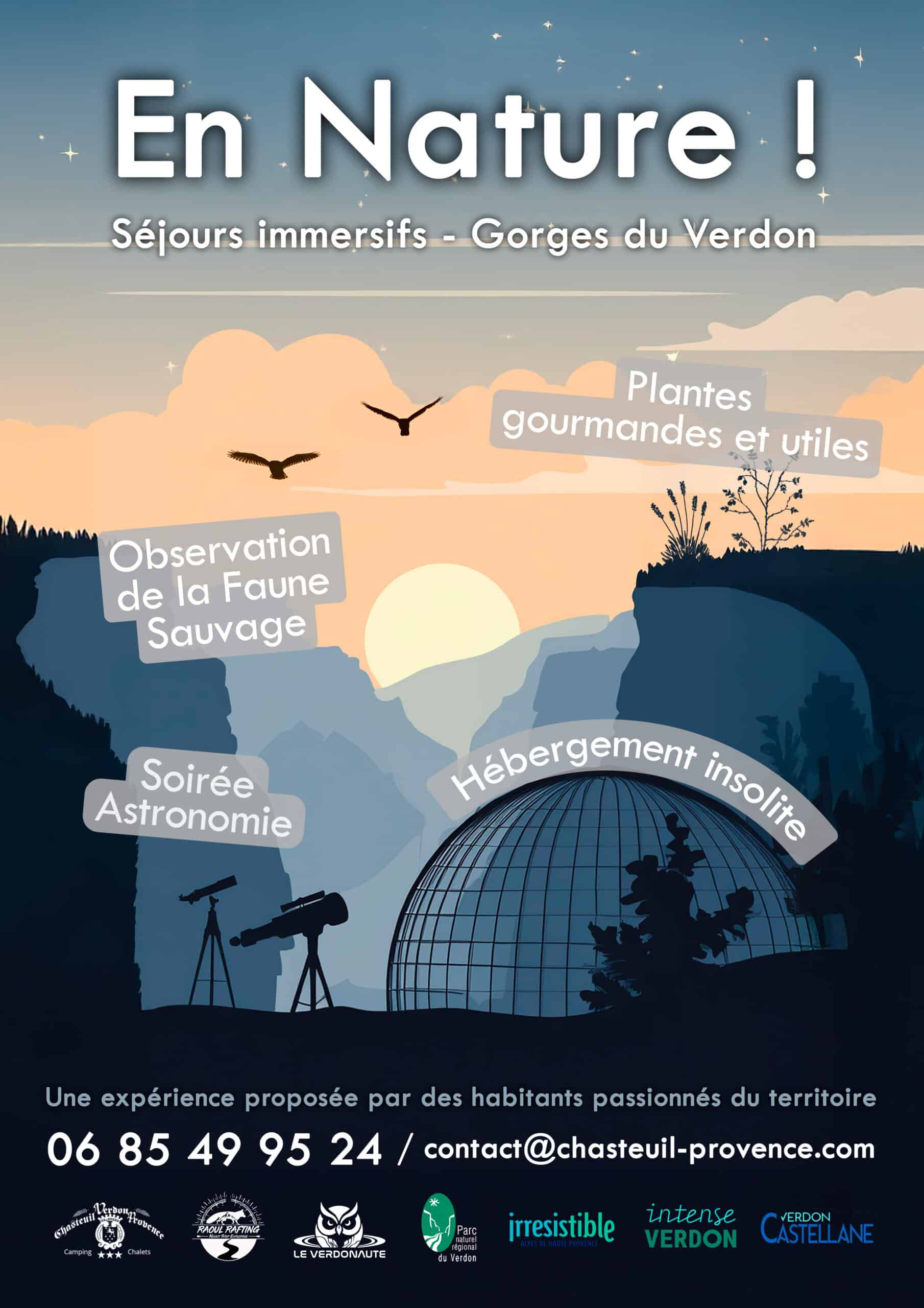 • (Re)trouvez l’essentiel : Observez les étoiles, écoutez le chant des oiseaux, découvrez les plantes sauvages qui nous entourent et laissez-vous bercer par la sérénité du Verdon.